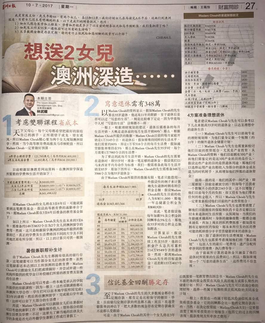 Pro Vision Wealth Management Sdn Bhd is an outstanding financial planning and consultation company. It has since contributed significantly in the building of the 3 most vital platforms in the nation: financial planning, sales and services.